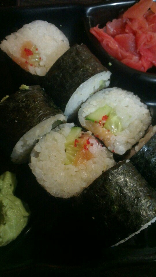 Кафе самообслуживания. Вполне такие сносные суши, только соленые почему-то :)