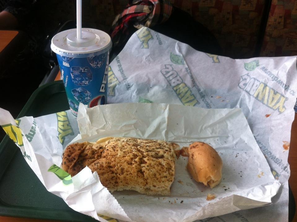 Худший саб. Булку толком не разрезали пришлось рвать. Медленно и не слаженно работают.